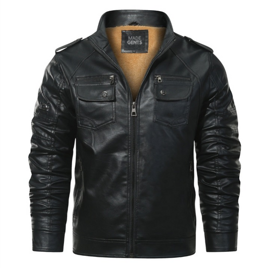 Made Gents | LEREN (PU) FLEECE BIKER| JACKET