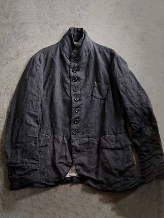 Men's Japanse Traditionele Sashiko Kunst Linnen Blend Hooded Blouse
