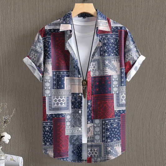 Men's Japanse Traditionele Sashiko Kunst Linnen Blend Hooded Shirt