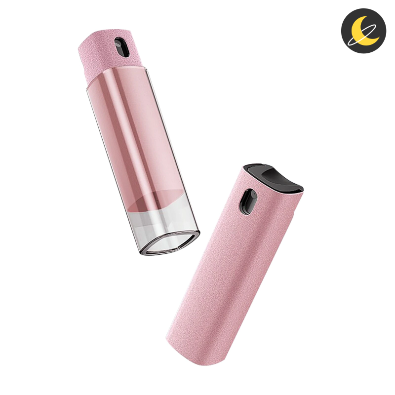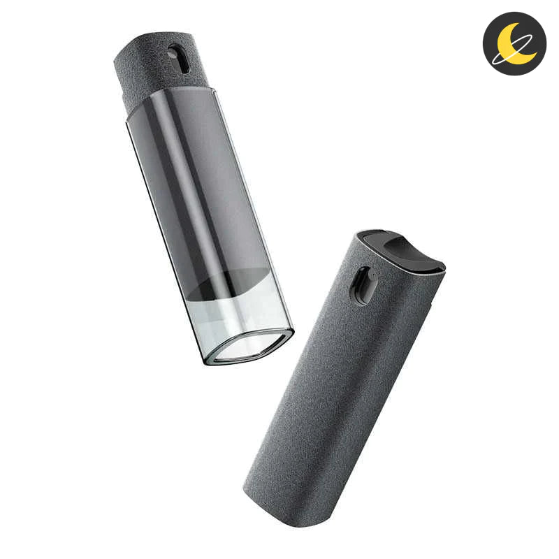 Our cleaner comes with an ABS transparent protective case, a built-in bottle with spray and wipe storage integrated, and microfiber wipe.