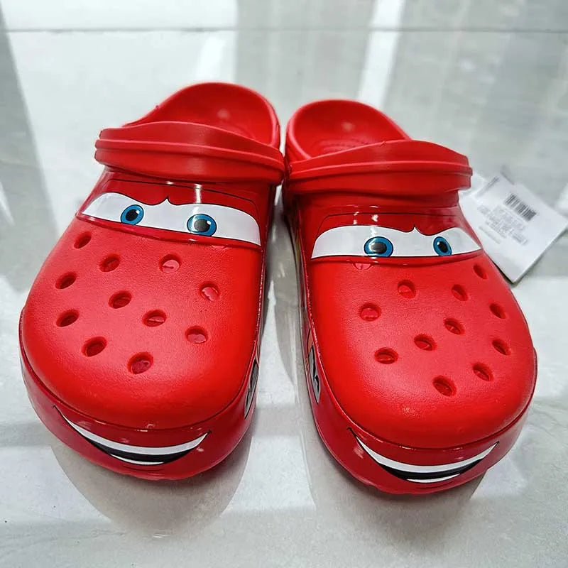 Cartoon Disney Pixar Lightninged Mcqueens Solid Waterproof Slippers Outdoor Sandals Casual Breathable Ankle-wrap EVA Shoes Gift