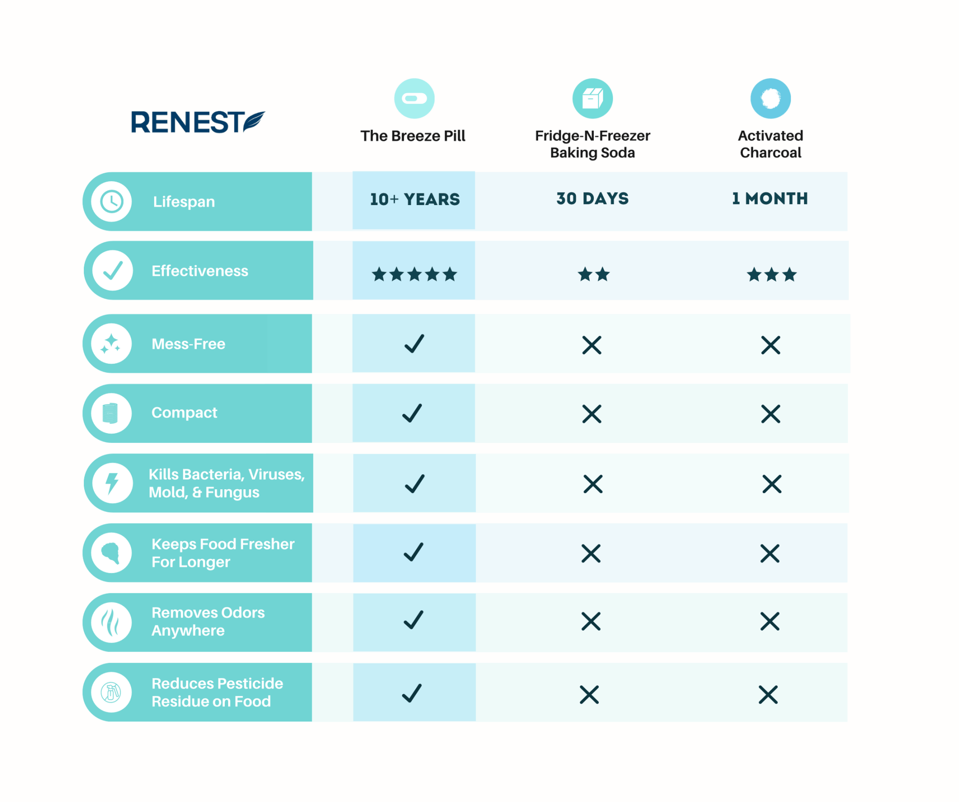 At Renest, we pride ourselves on the versatility of The Breeze Pill. It does its job wherever it goes, whether that’s in your fridge, bathroom, shoes, or car. Our device is small enough to put anywhere, and is TSA approved in case you want to bring it along for your next vacation!