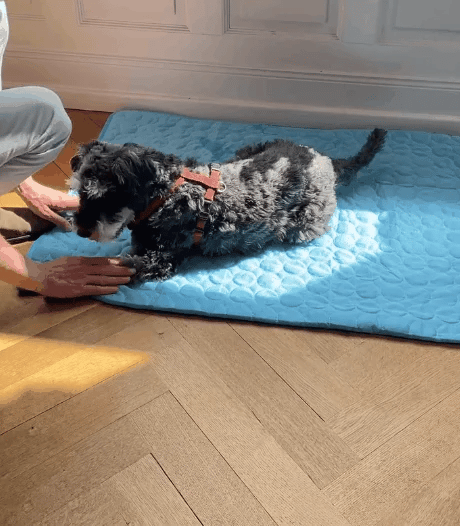 Perfekt für drinnen und draußen, passt sich der CoolBuddy mühelos in Hundebetten, Transportboxen oder direkt auf den Boden an!