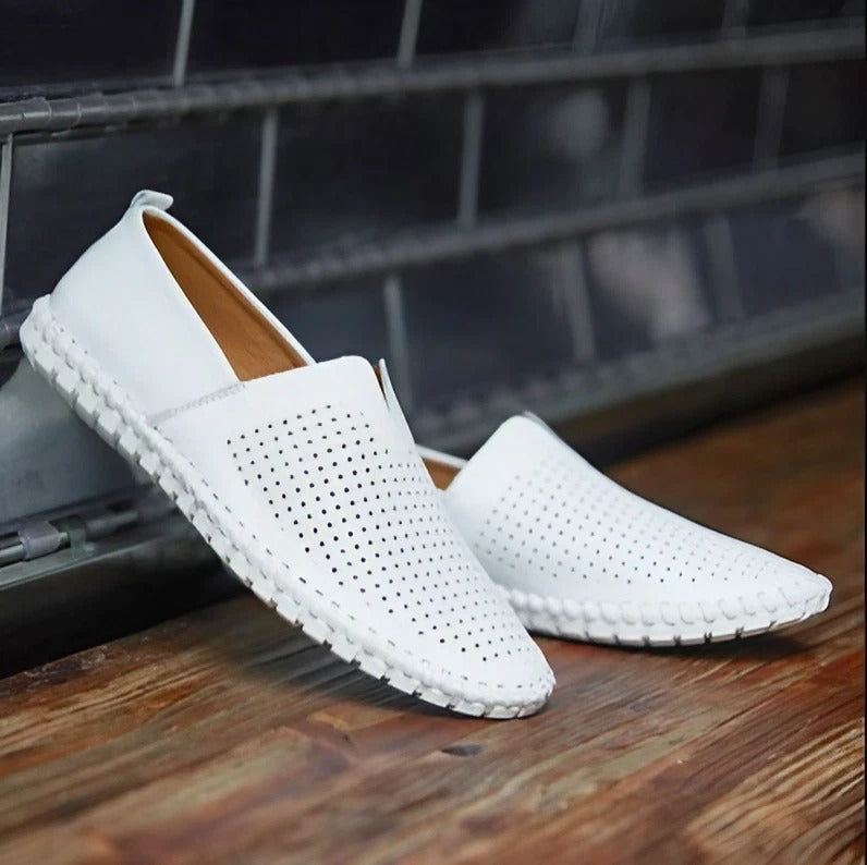 Experience the epitome of sophistication with the Custello English Leather Loafers. Meticulously crafted from premium genuine leather, these loafers effortlessly blend formal and casual styles. With exceptional breathability and timeless design, they guarantee lasting elegance and versatility for your wardrobe.