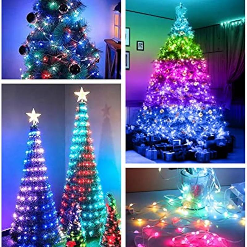 The APP control smart fairy lights are 16.4feet /32.8 long with 100 color-changing micro LEDs. The thin copper wire and smaller dewdrop-sized LED bulbs will give a delicate and cozy touch to everyday decorations and holiday decor like DIY, Wedding, Party, etc