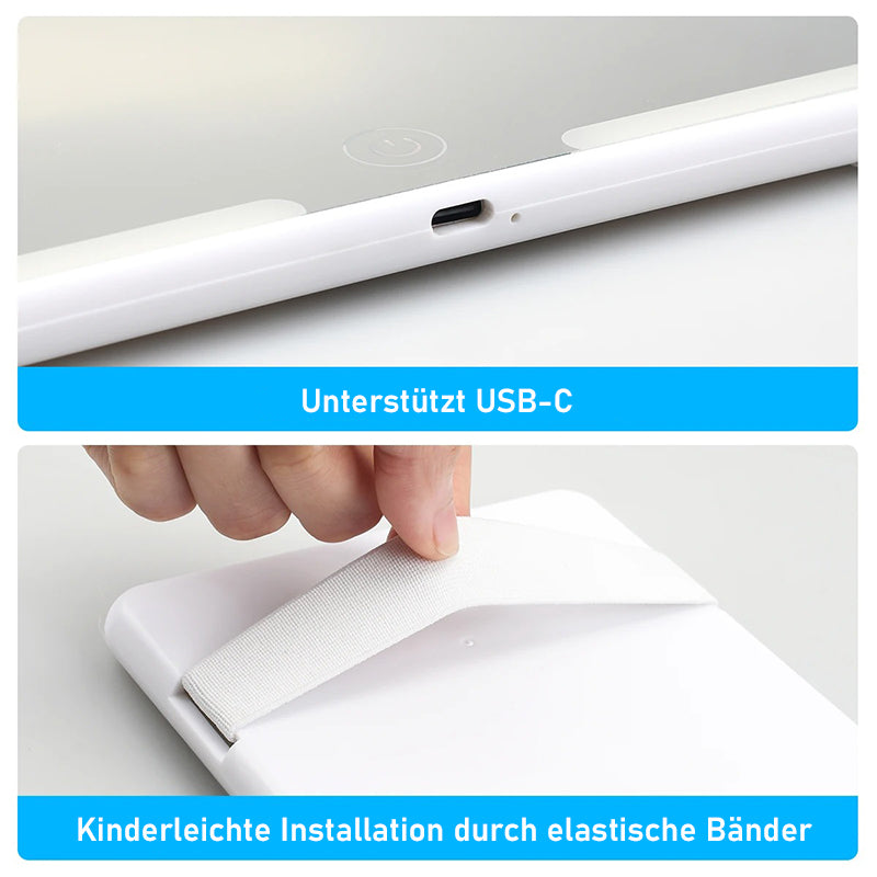 Warum dich weiterhin mit deinem kleinen, unbeleuchteten Spiegel herumärgern?Das mühsame Herumfummeln bei schlechten Lichtverhältnissen, um einen Blick auf dein Spiegelbild geht dir auch auf die Nerven?