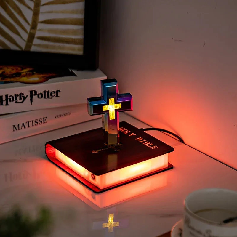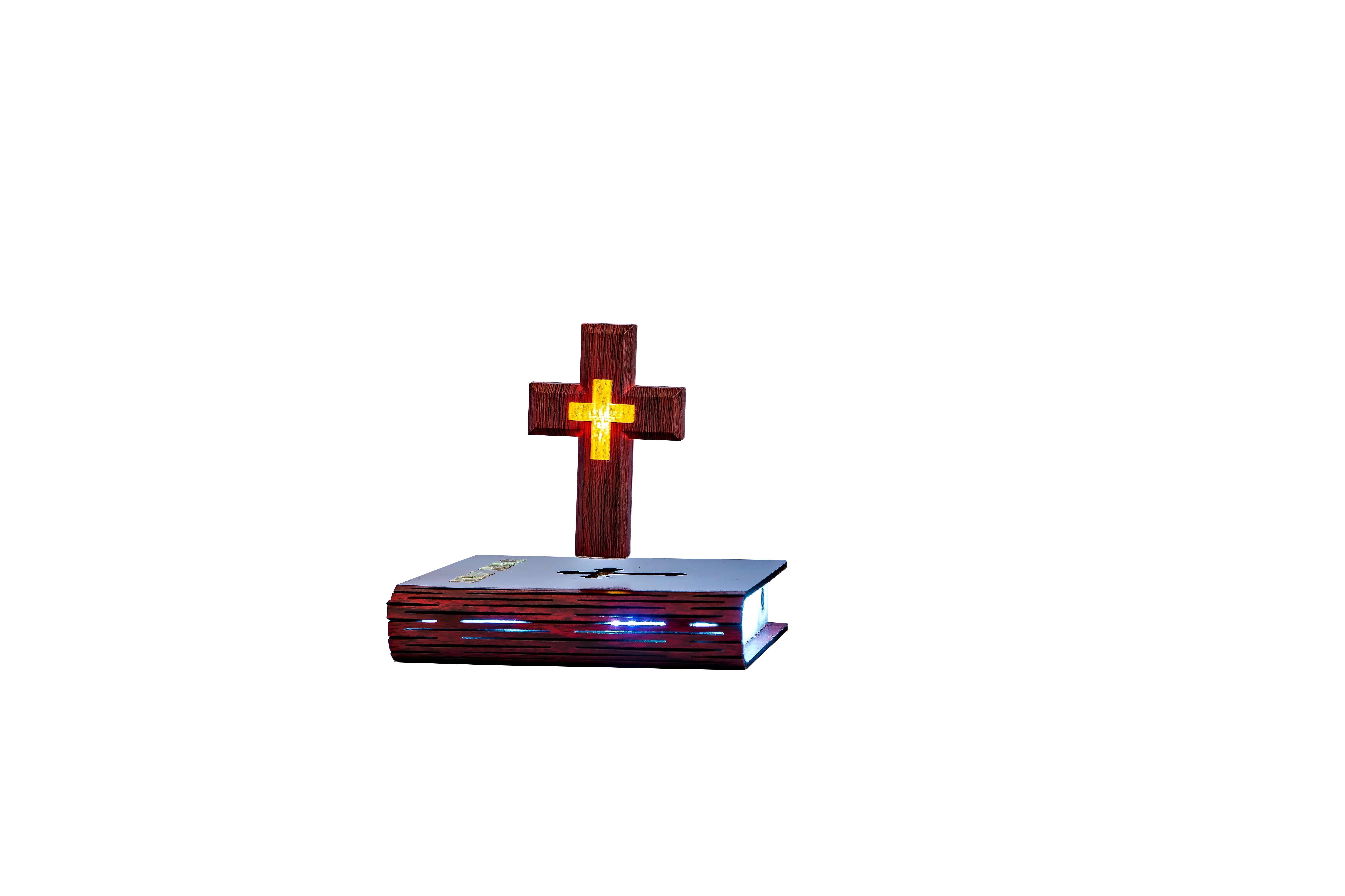 Handcrafted Heavenly Decor Levitating Cross & Divinely Illuminated Bible