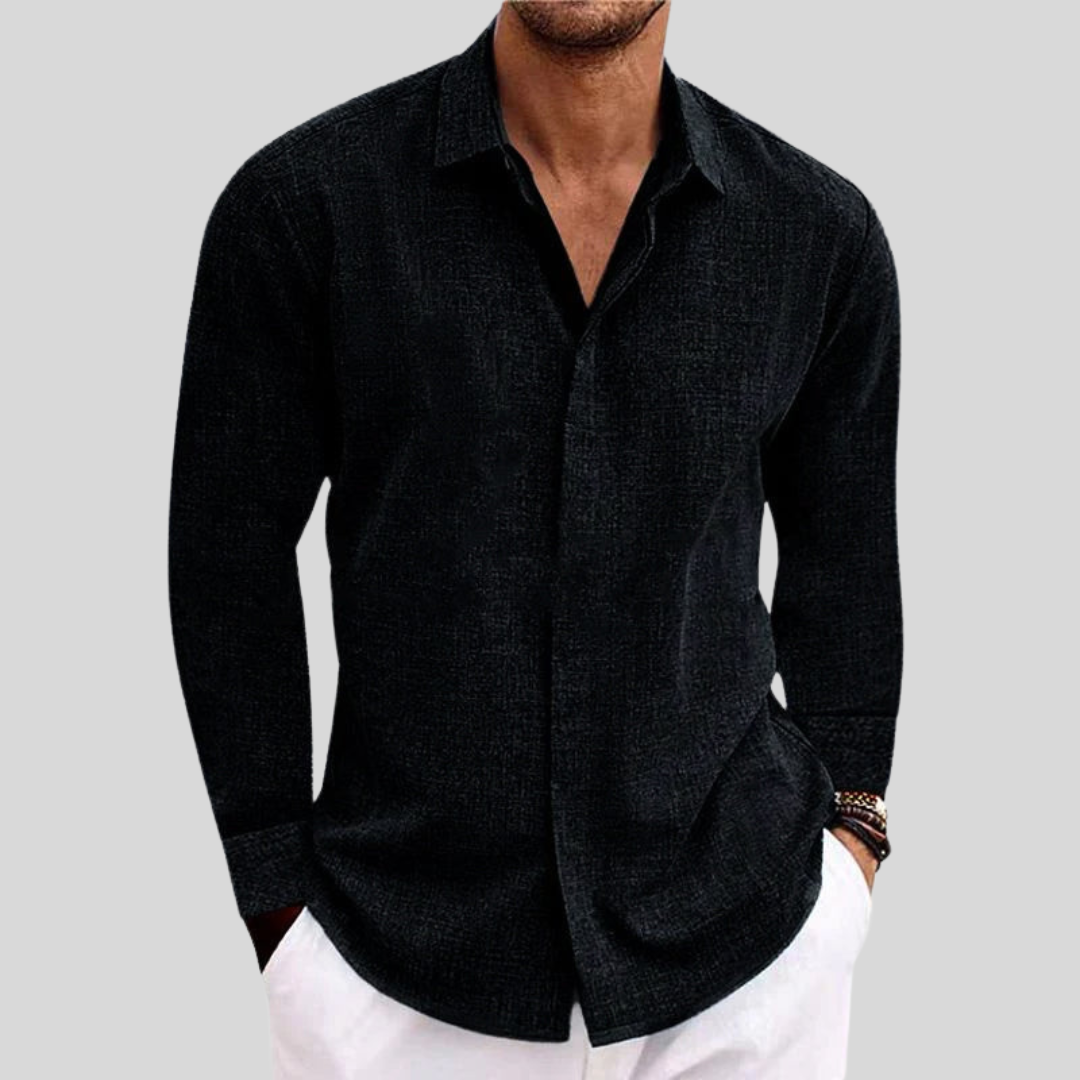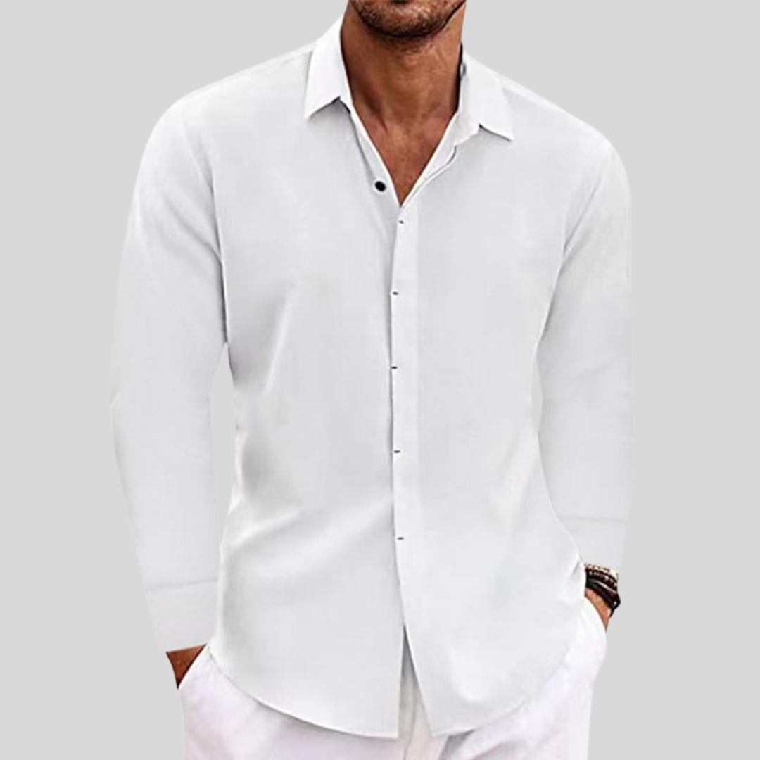 Dompel jezelf onder in een wereld van tijdloze elegantie en luxueus comfort met ons klassieke linnen overhemd voor heren. Dit overhemd belichaamt de perfecte balans tussen verfijning en ontspannen stijl, waardoor het een essentieel kledingstuk is voor elke moderne garderobe.
