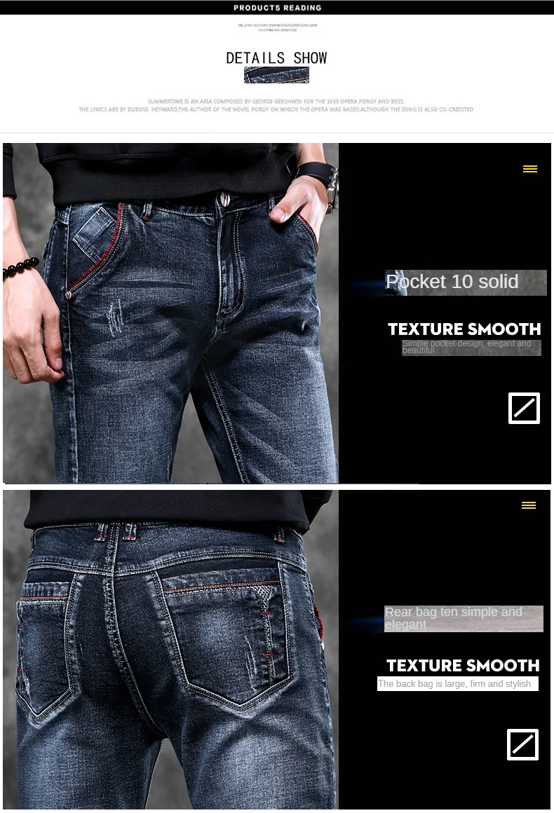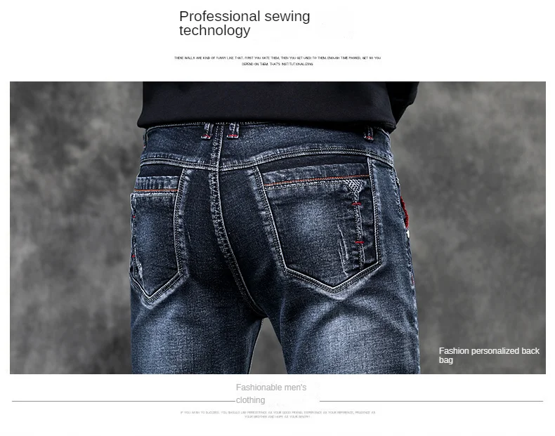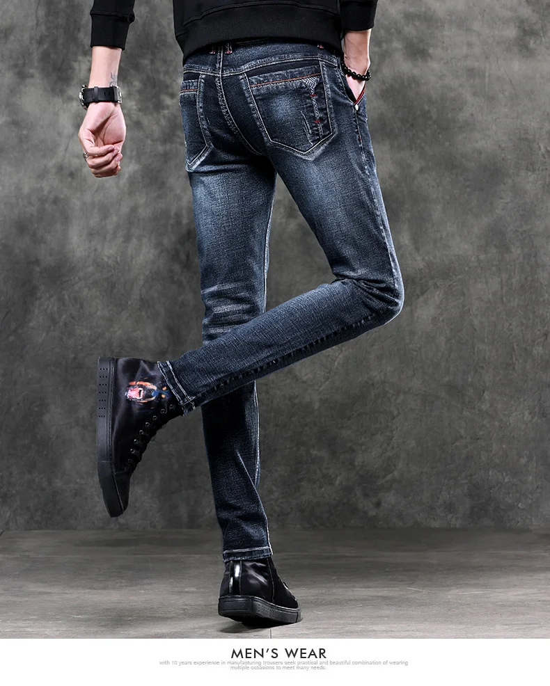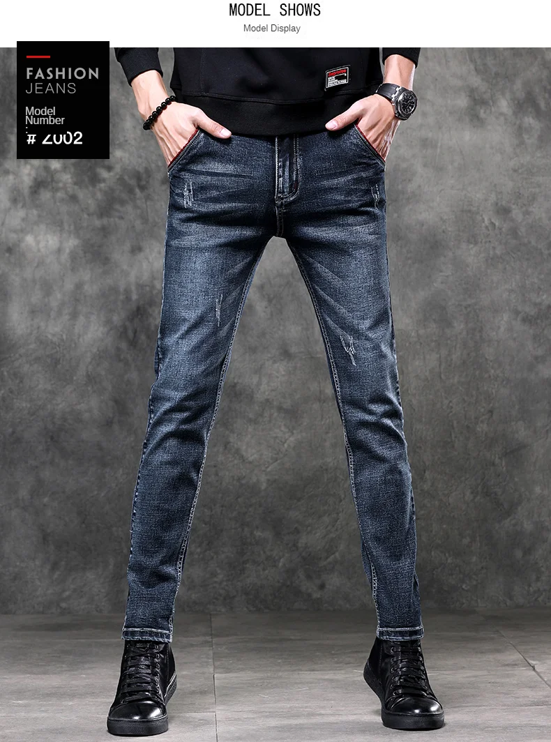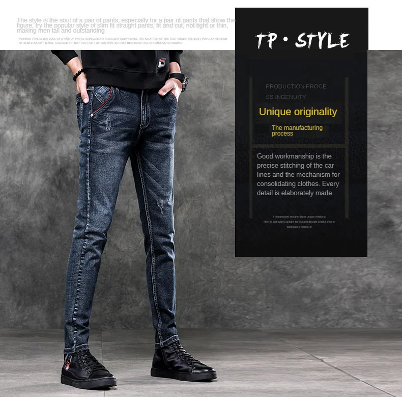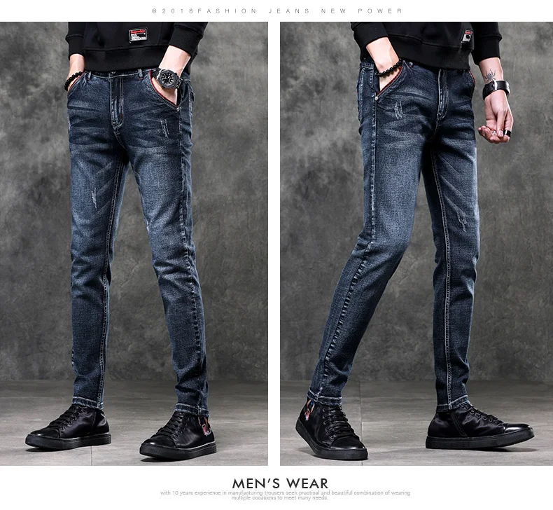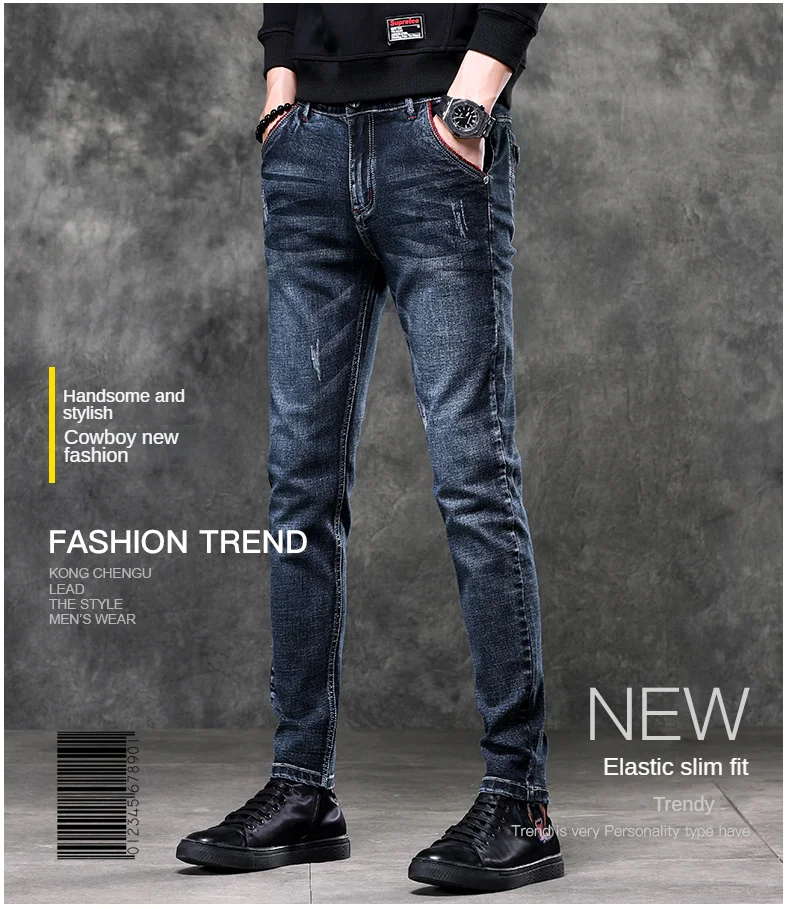 Jeans Men's Denim Stretch Slim Casual Trendy Pants Small Feet Fashion Work Daily Long New Brand Male