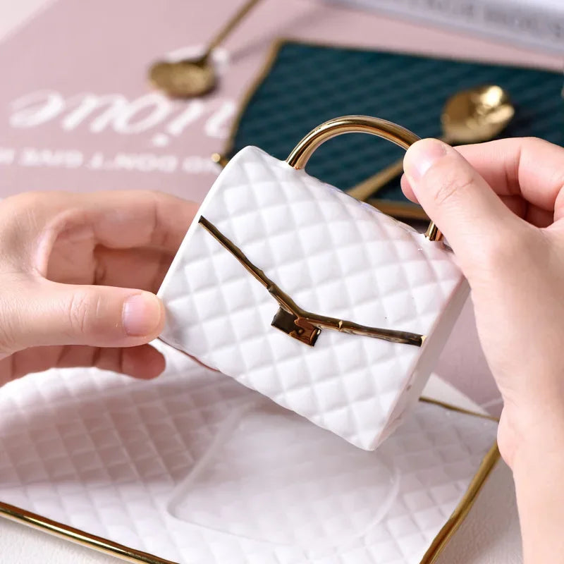 Impress your guests with a coffee cup that transcends its purpose. It's not just a vessel; it's a fusion of high fashion and functionality. This exquisite piece is more than a coffee cup—it's a gift of sophistication, a catalyst for conversation, and a symbol of style. Its purse-like silhouette and leather-esque finish will leave a lasting impression at any gathering. Perfect for making a statement of elegance & enjoying your daily coffee ritual in style.