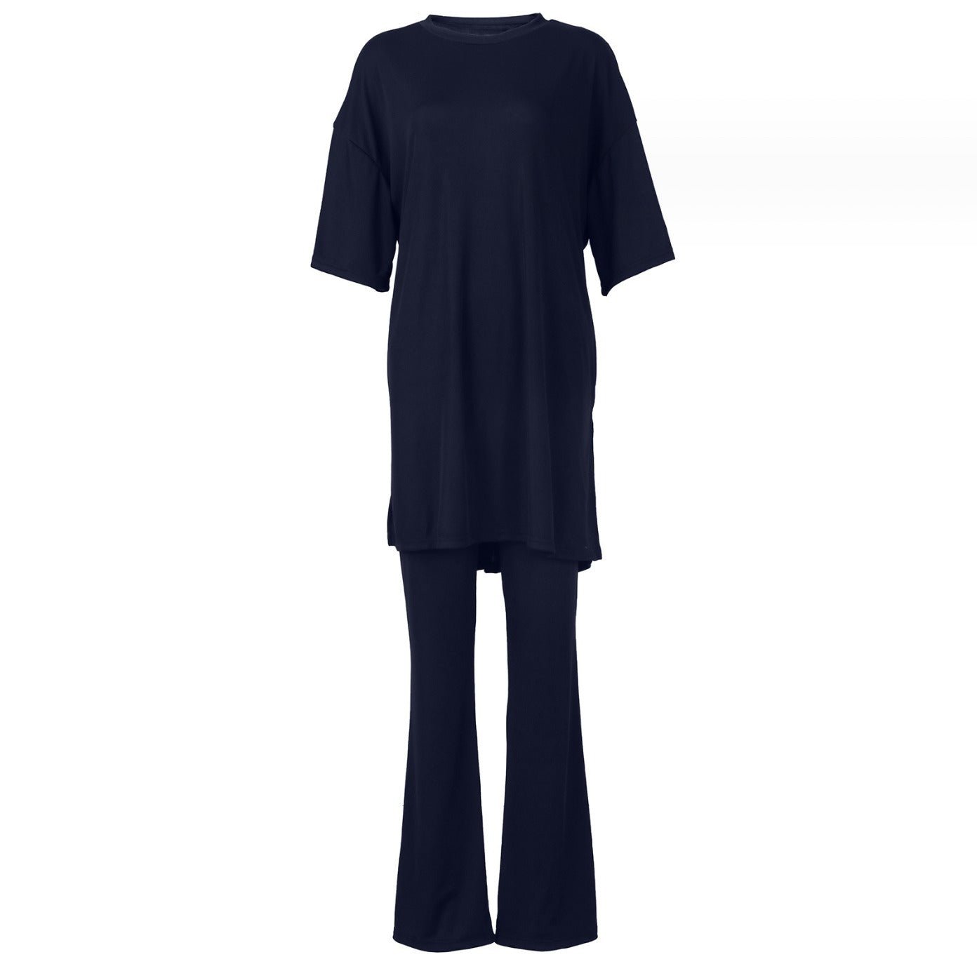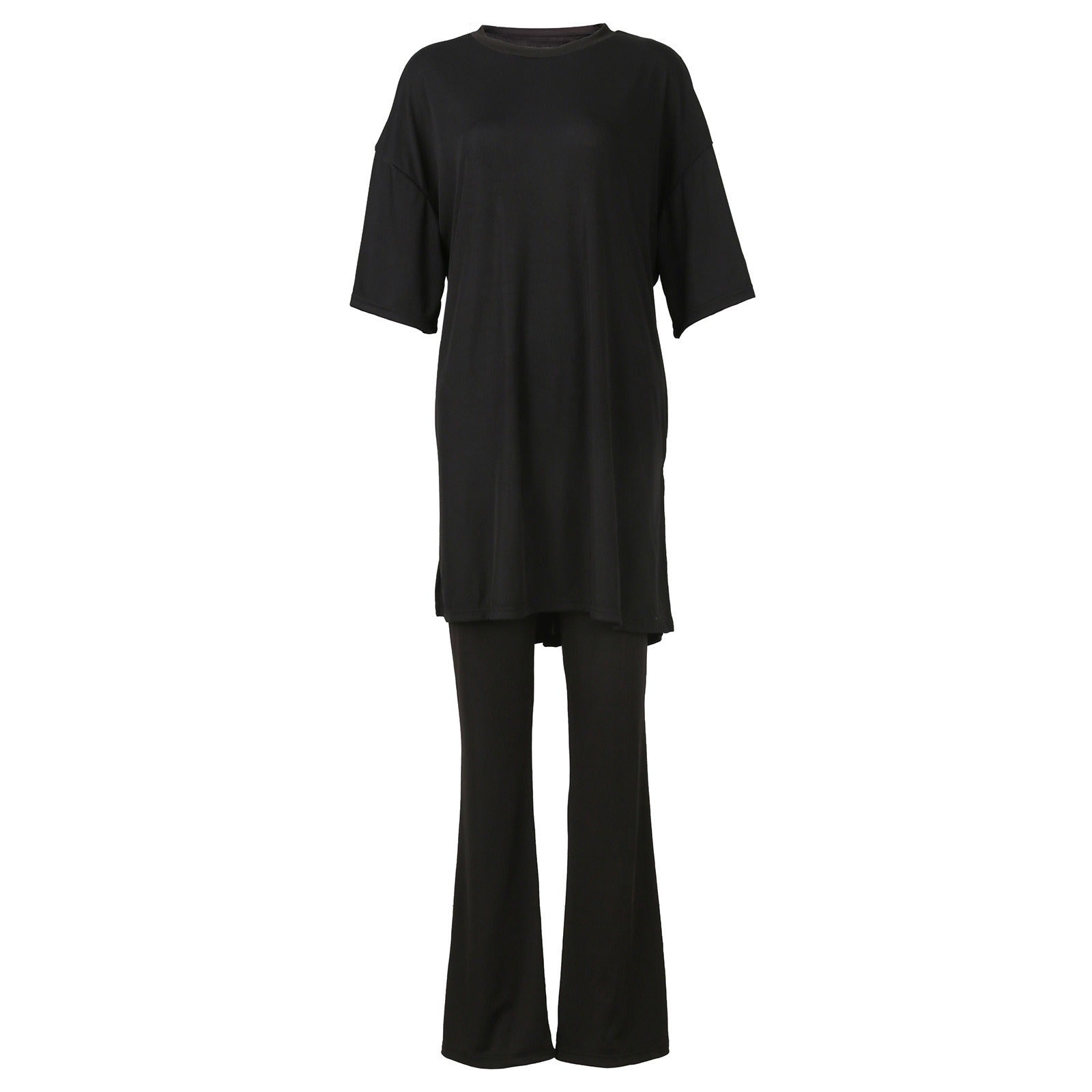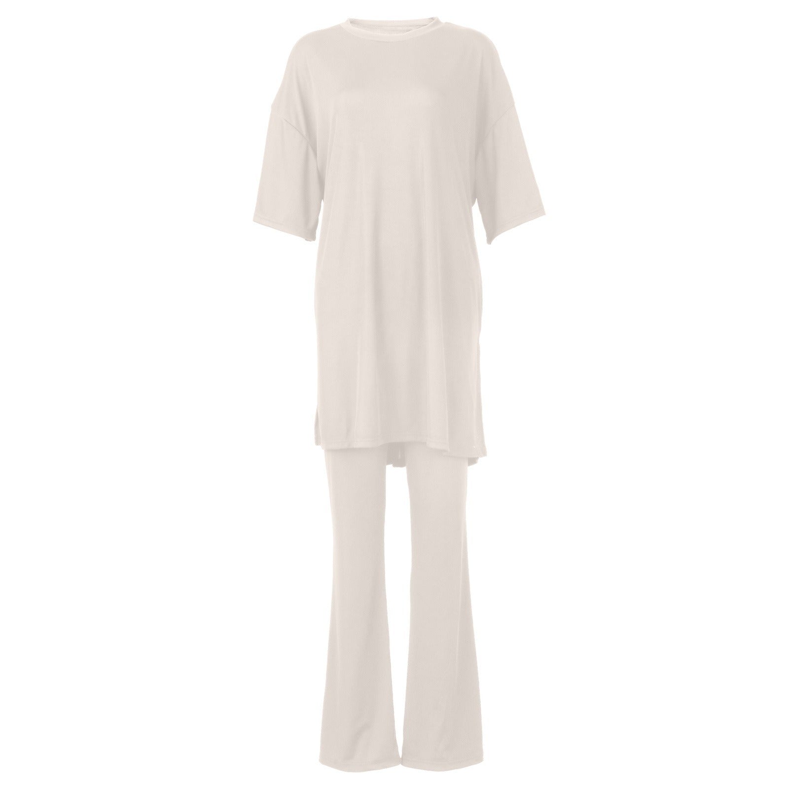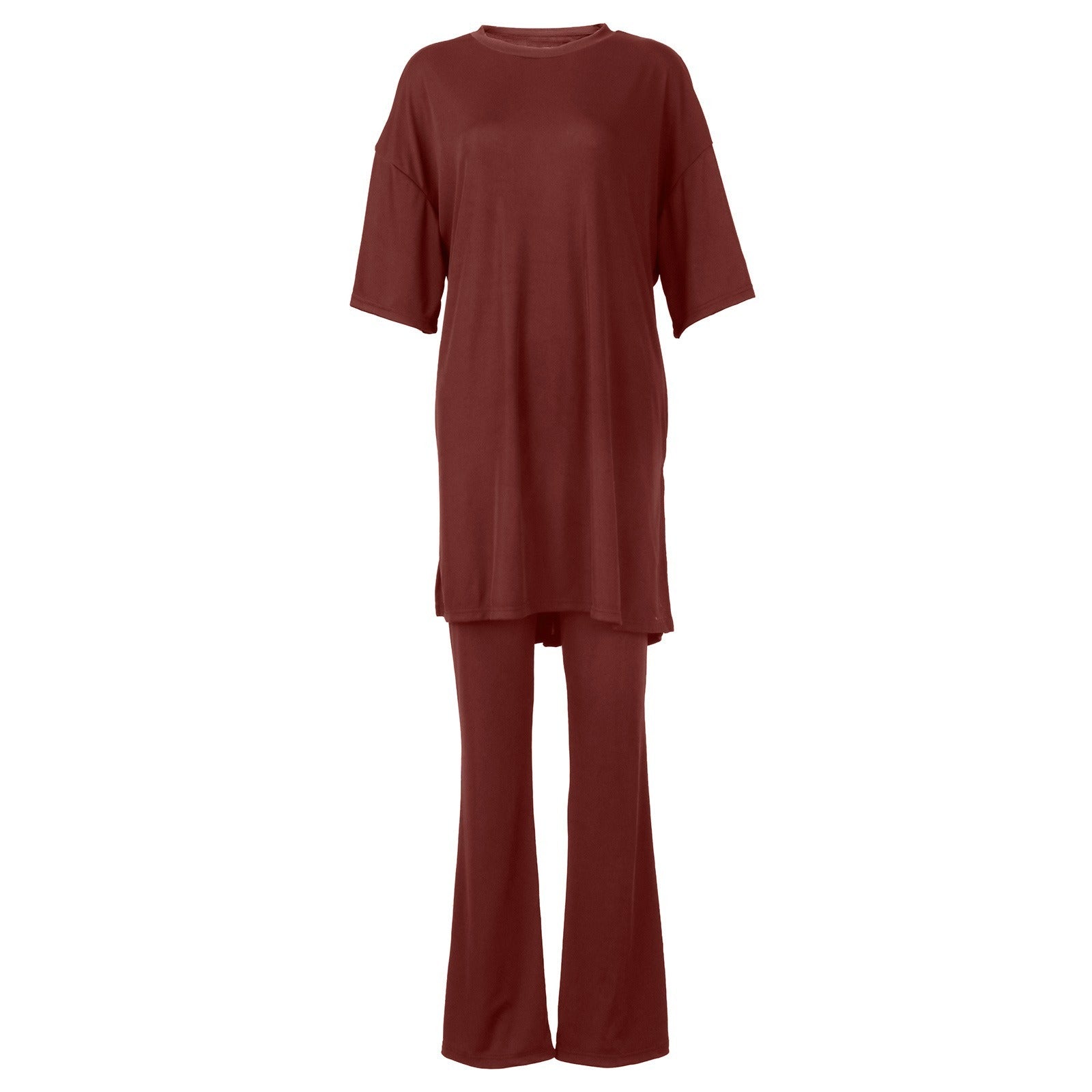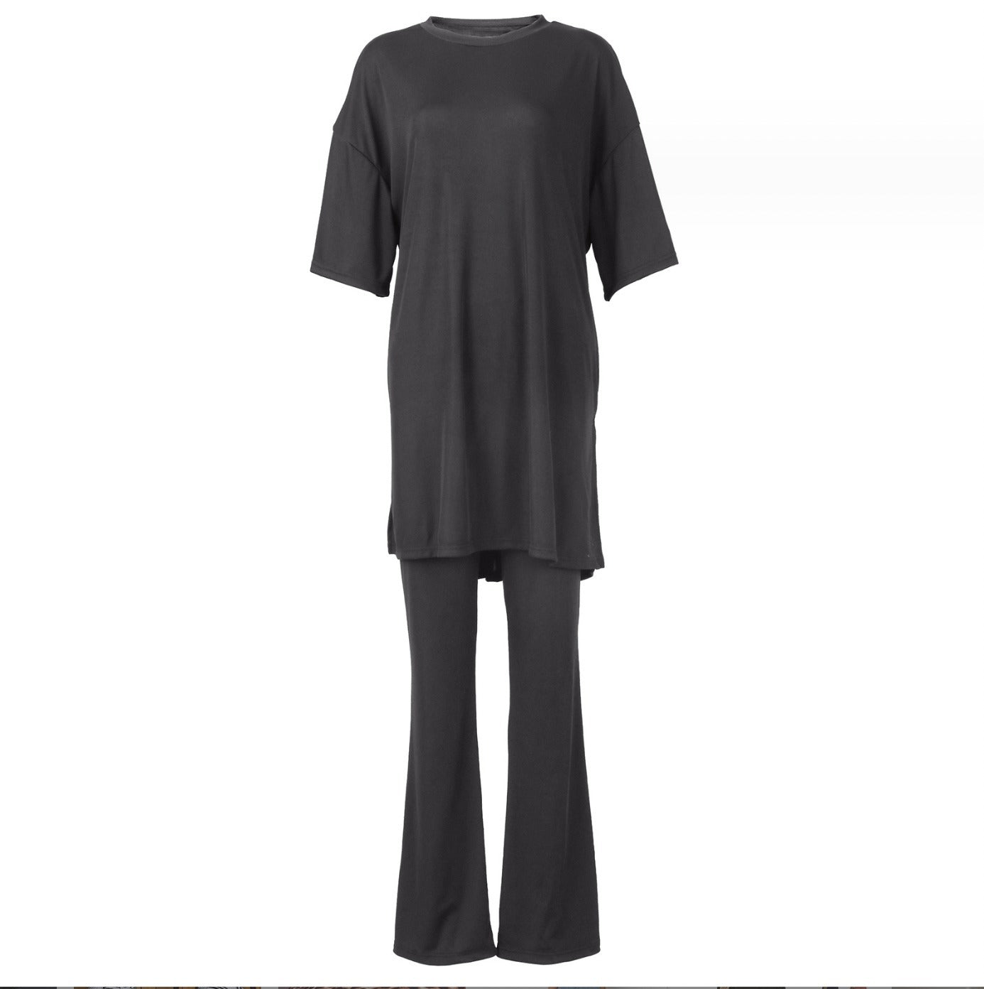The Lazy Sunday Two Piece includes one oversized boyfriend tee and matching long flowy pants for those chilly fall and winter days!