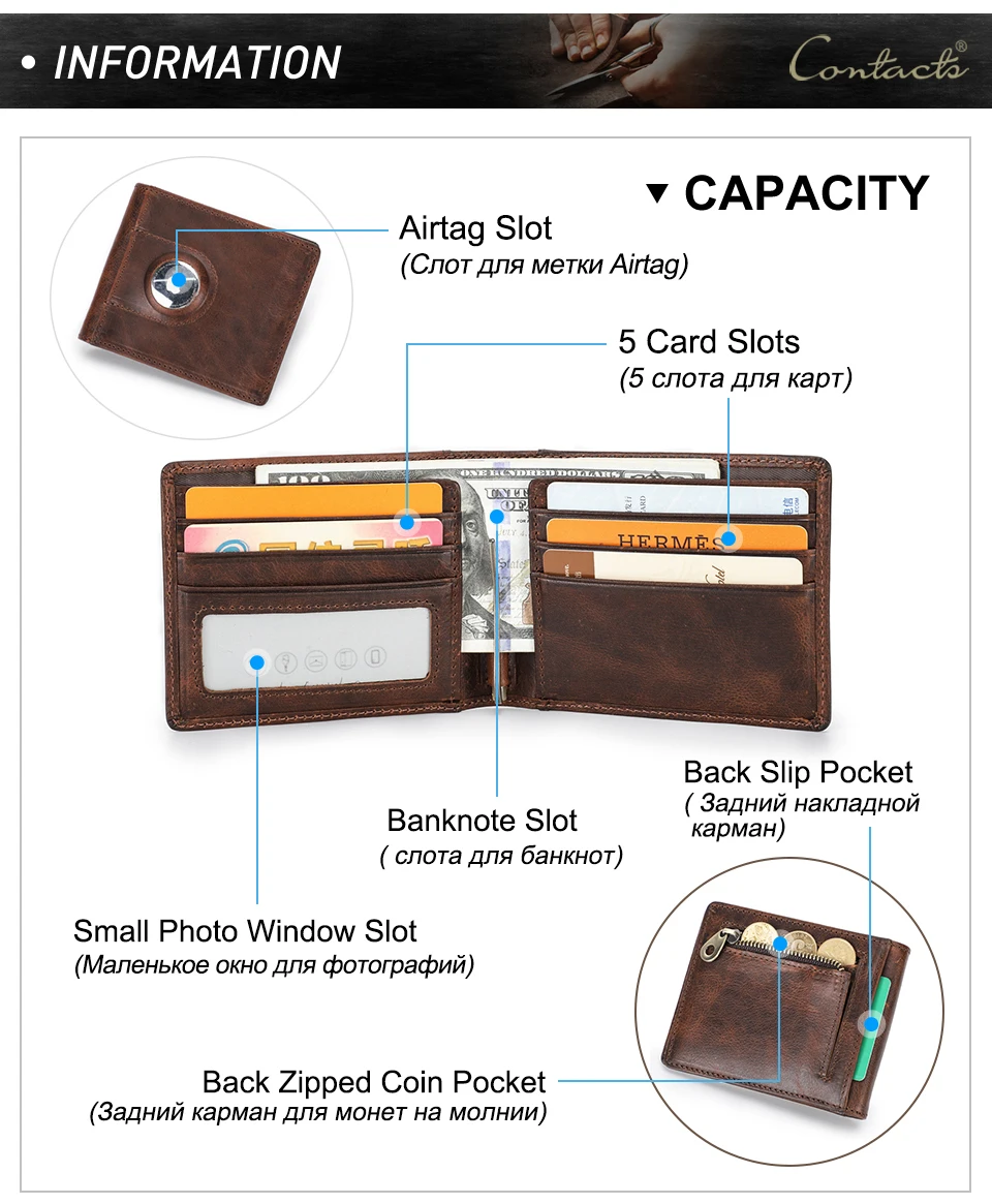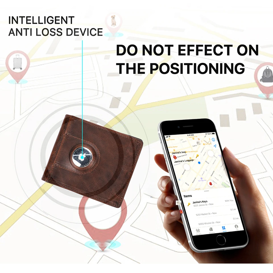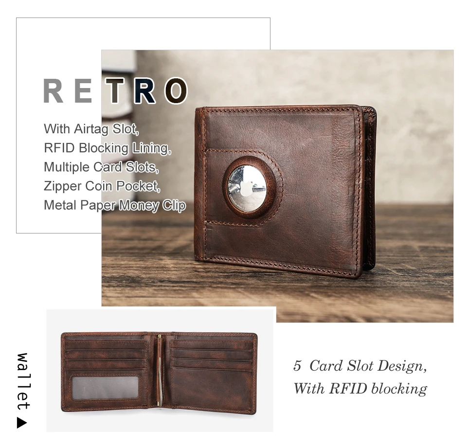 Men Airtag Wallet Card Genuine Leather Slim RFID Wallets for Apple Airtag Case Money Clip Card Holder Casual Male Purse Smart