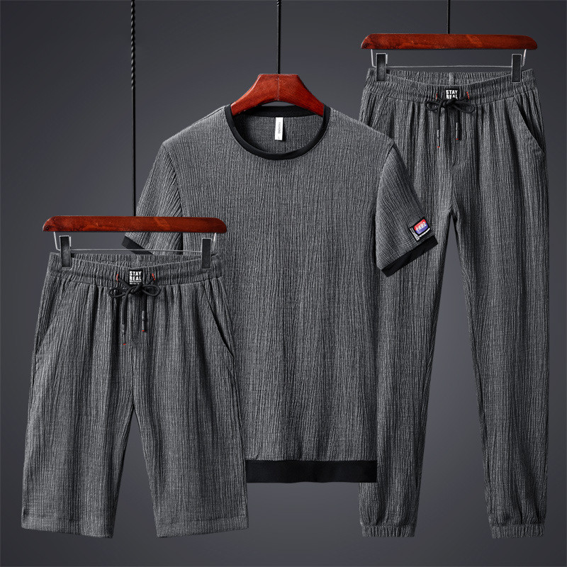 Men's Three Piece Sports Suit Ice Silk Plus Size Elastic