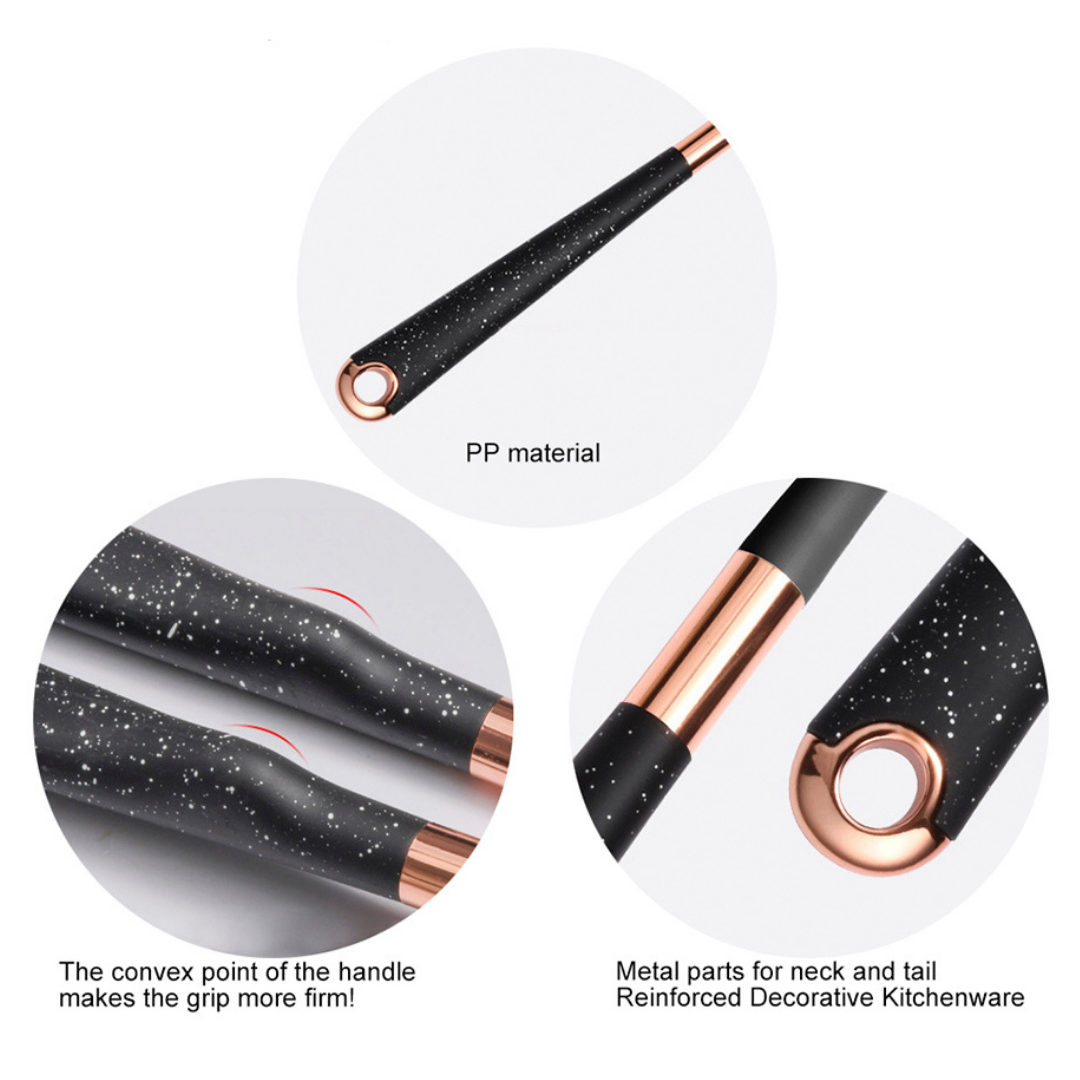 Introducing the Midnight Kitchen Set – your kitchen's new best friend! Available in both 7-piece and a comprehensive 10-piece option, this collection combines the perfect blend of style and functionality. Elevate your cooking experience with these lustrous utensils and unleash your culinary experience with a touch of sophistication in your kitchen!