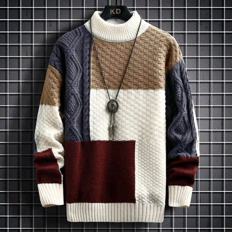 A patchwork of mismatched colors designed for modern man in mind. Custom-developed thick fabric, precisely knitted by expert craftsman, this sweater brings rich classic style along with exceptional warmth for today's men.