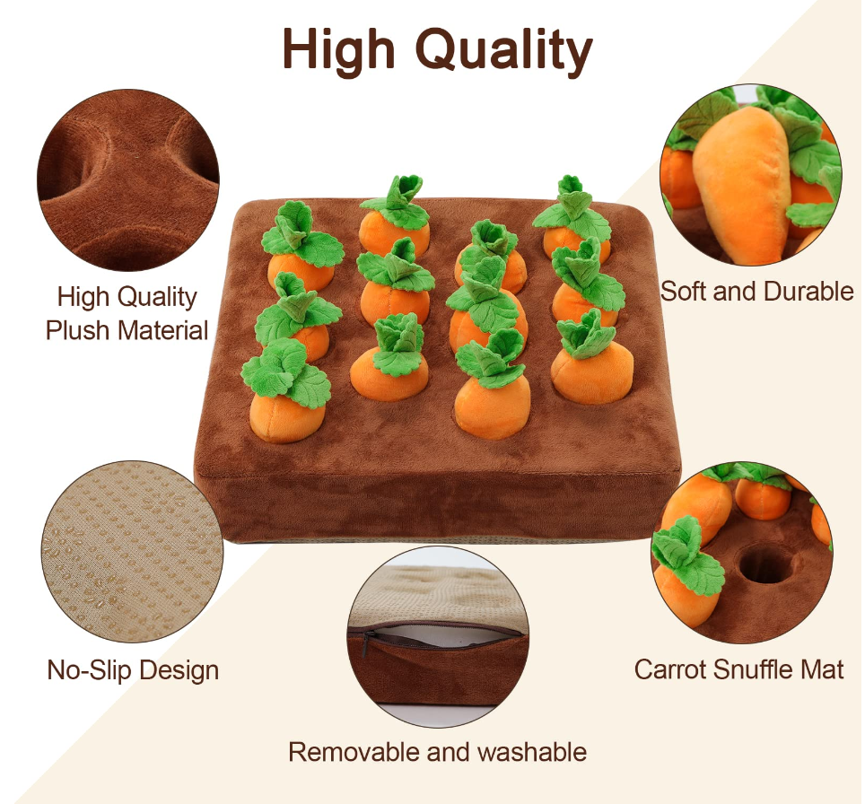 The non-slip design makes it easy for your dog to play and the 12 included carrots provide plenty of entertainment. This mat is a great way to engage your dog's natural nose work abilities and keep them entertained for hours.