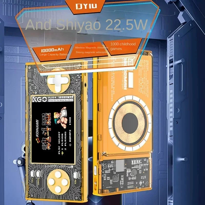 Stay charged and entertained with the PowerupBank® XGO. This compact device offers 10000mAh of power and features a built-in game console with 10,000 classic games. Ideal for on-the-go charging and fun.