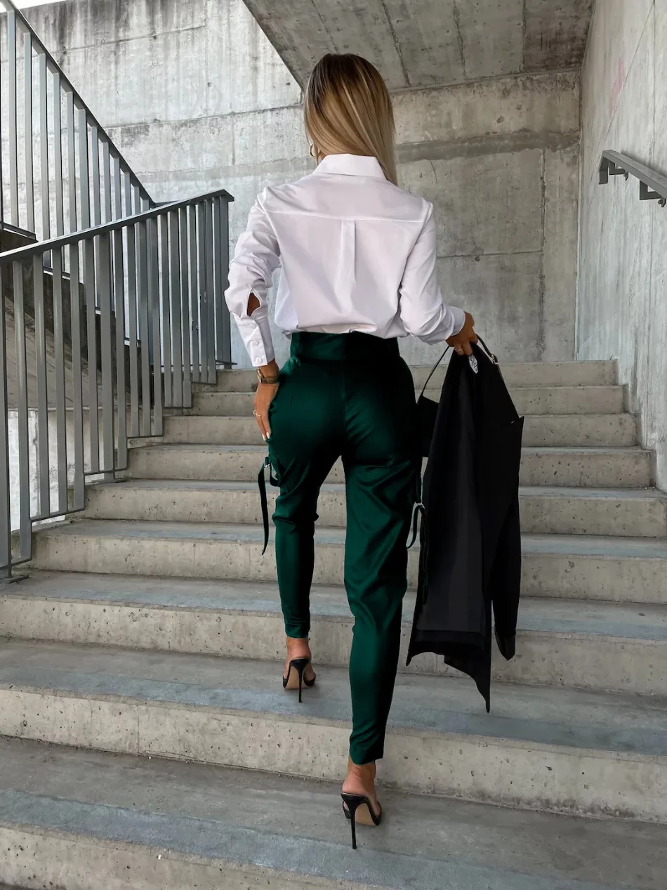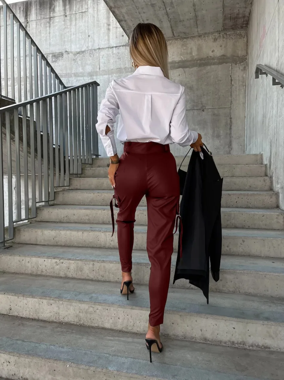 PU Leather Women's Pants Winter Fall High Waist Trousers Casual Loose Streetwear Zipper Joggers Black Cargo Pants for Women 2024