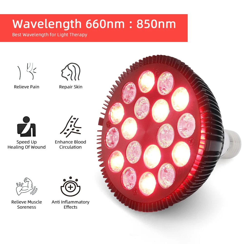 1.Red Light Therapy Lamp: Each therapy light bulb has 18pcs high power leds in total. 9pcs 660nm deep red leds + 9pcs 850nm near infrared leds making it the best wavelength for light therapy. Infrared light is invisible to the naked eye so when using this bulb only half of the chips will appear illuminated