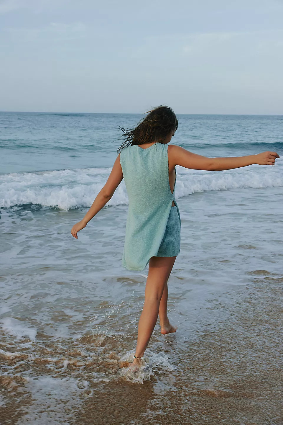 A chic & cozy two-piece featuring a longline sweater top with a high boat neckline and vented hemline, paired with slim-fit ribbed shorts. Perfect for any occasion, this versatile set effortlessly transitions from beachwear to streetwear, offering endless styling possibilities.