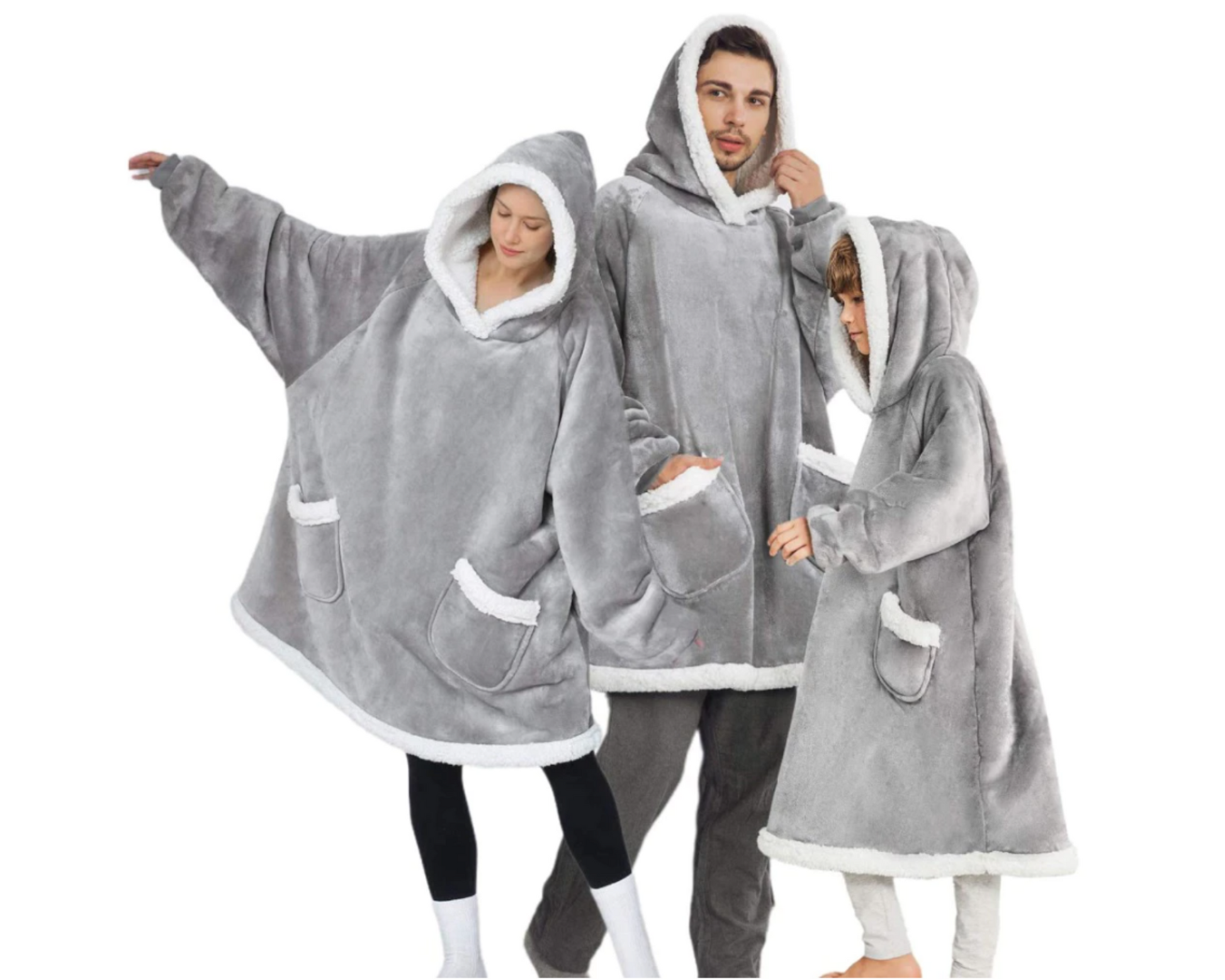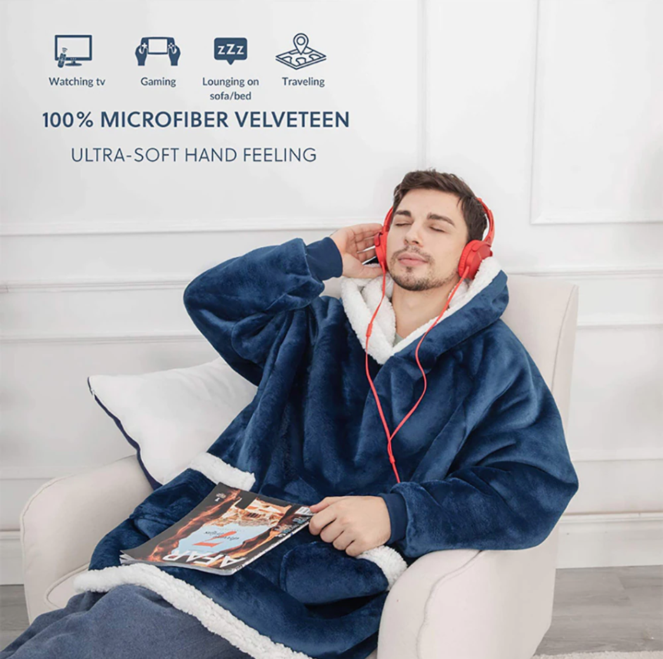 ✨Oversized Everything: It’s giant, and it's supposed to be! We started with a men's 5XL and have only gone bigger from there. With a huge plush hood, marsupialTM pocket, oversized sleeves, and a high-low hem, The Hoodie Blanket is like being hugged by a cloud! Bring it to the next outdoor barbeque, camping trip, beach, drive-in, or sleepover, or wear it to school! Now you can wear your blanket anywhere!