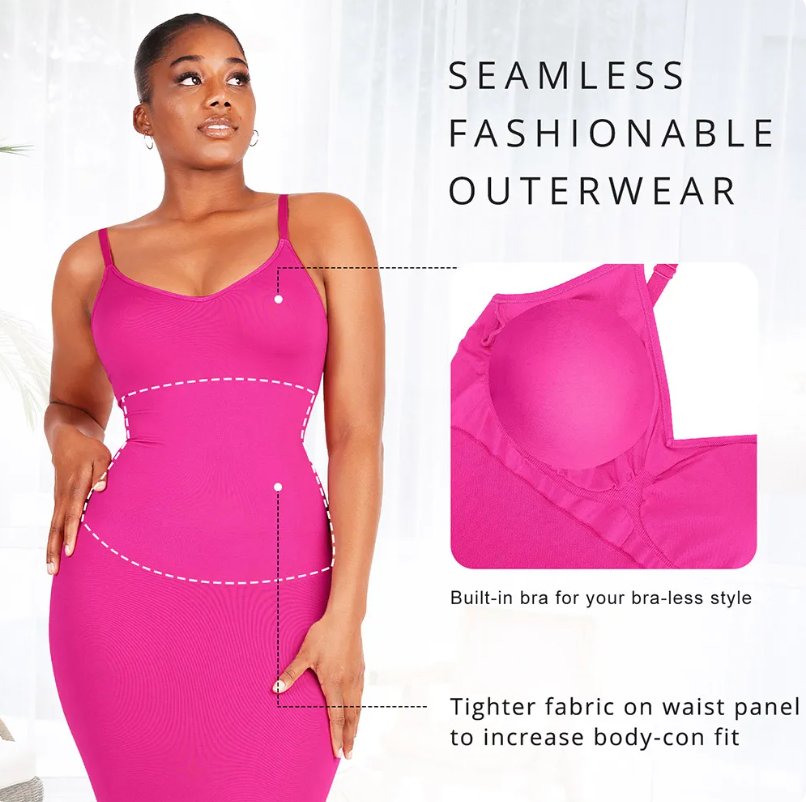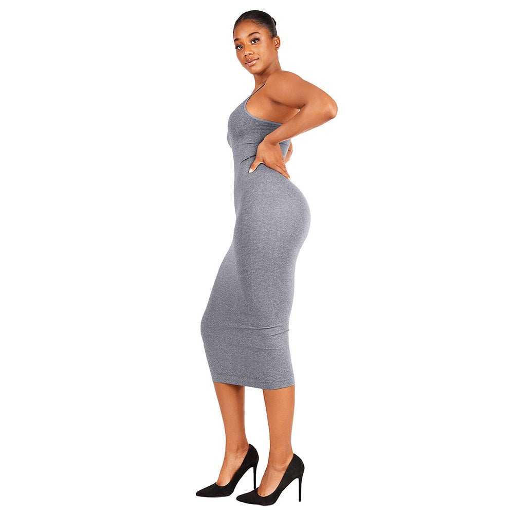 The Viral Long Shaper Dress – a harmonious blend of luxury and performance. Elevate your loungewear game with its sumptuously soft and drapey material, caressing your silhouette for that body-skimming allure.