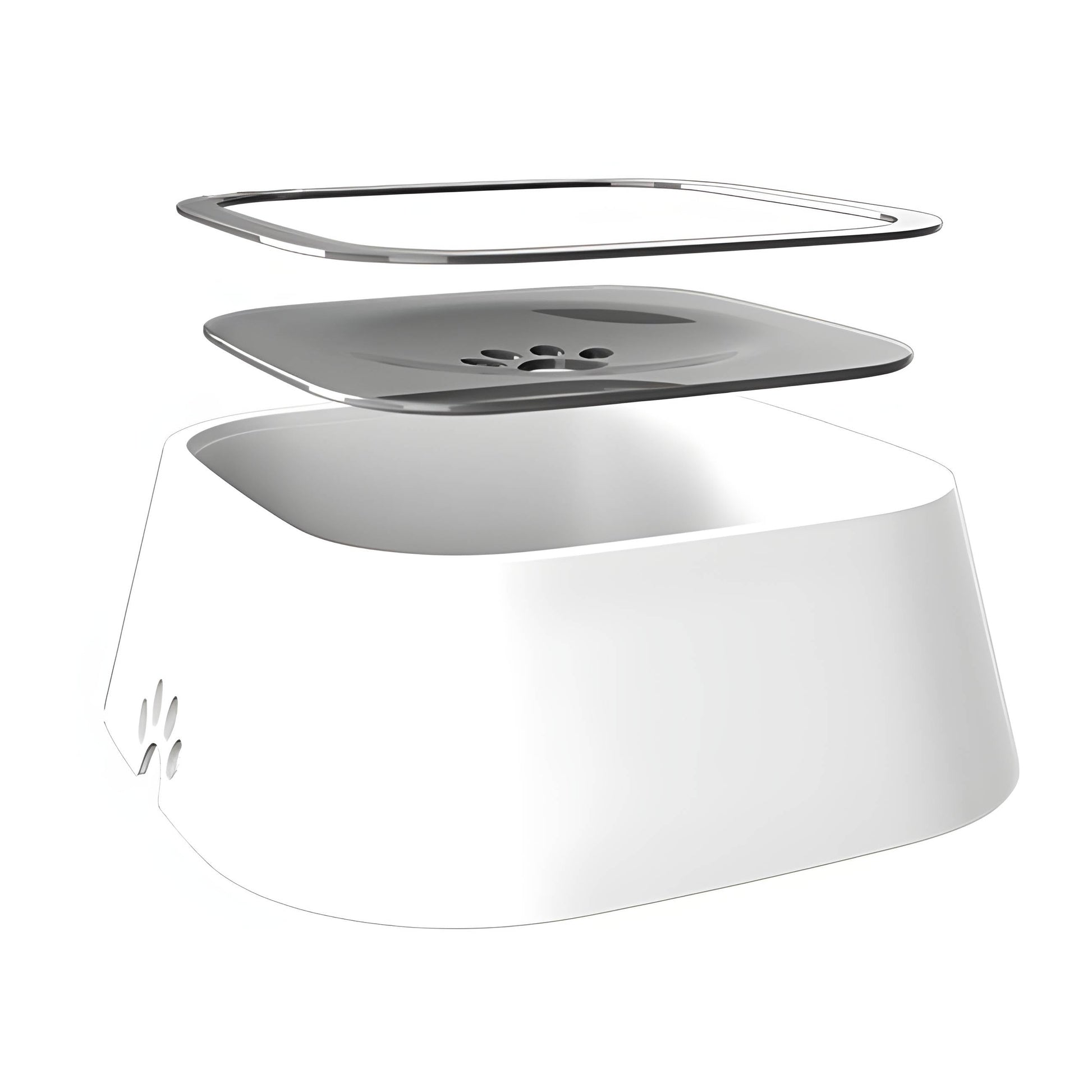It features a unique floating disk that promotes slow drinking and stops water from splashing out of the bowl.