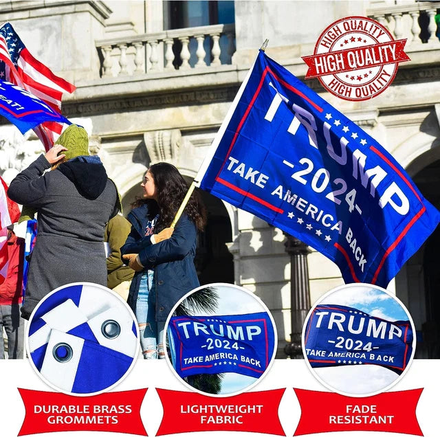 This 2024 Take America Back Flag is the perfect way to show your support for re-electing President Trump. Made with quality materials, it proudly displays and symbolizes the values and principles of the United States. Support your candidate and country with this expertly crafted flag.