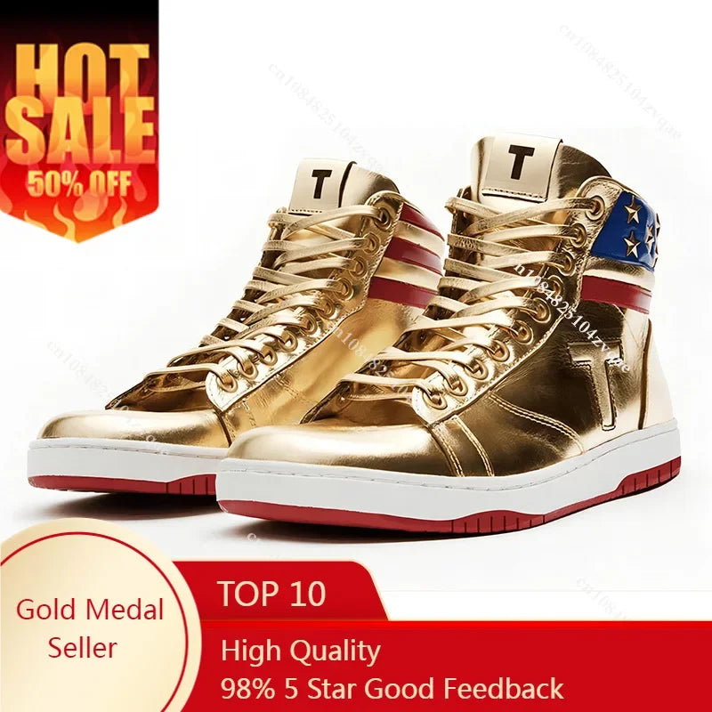 Trump Shoes Never Surrender Gold Sneakers High top Gym 2024 MAGA President Donald Shoe Mens Womens Casual Boots Road Sneaker